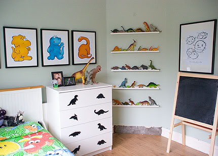 1-Instalar varias baldas en la pared para exponer la gran colección de figuras de Dinosaurios y tenerlos en todo momento a mano. Además de ser una opción muy decorativa a los niños les encantará.